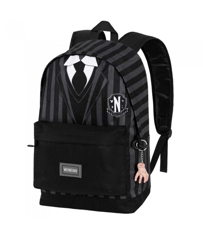 -Mochila HS FAN 2.0 Miércoles Uniform. Miércoles. Mochila urbana ligera con un único compartimento. Forro interior con bolsillo para dispositivos electrónicos. Bolsillo frontal, correas acolchadas ajustables y cinta trasera adaptable a trolley.