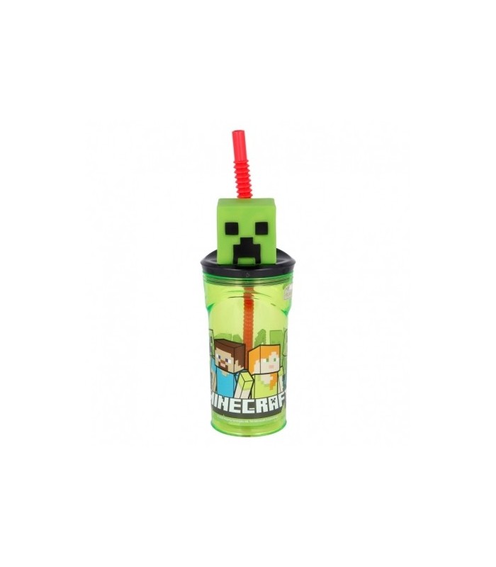 Vaso infantil reutilizable con pajita y tapa con figurita 3D y capacidad de 360 ml de Minecraft