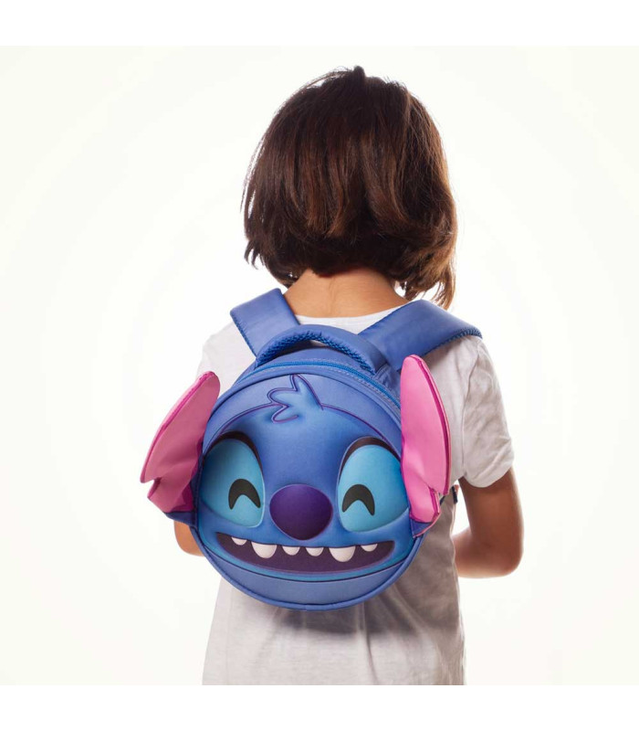 Mochila Emoji Lilo y Stitch Send. Lilo y Stitch. Pequeña mochila redonda con relieve frontal 3D de material suave. Un compartimento principal con cierre de cremalera. Forro interior con bolsillo de malla. Correas al hombro ajustables. Acolchada en laespalda, correas y asa superior