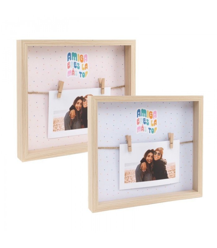 PORTOFOTOS MADERA CON PINZAS AMIGAS. MEDIDAS 27.4 x 3.2 x 24.4cm.