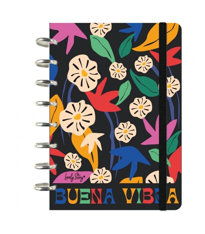 SMART BOOK A5 CON SISTEMA DE DISCOS - 100 HOJAS CUADRICULA 100GR - BLACK - BUENA VIBRA