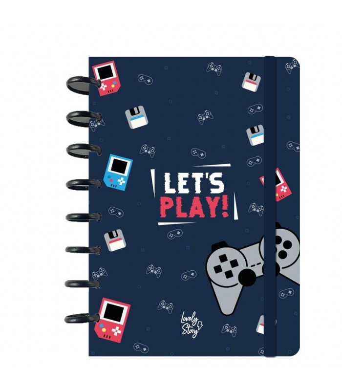 SMART BOOK A5 CON SISTEMA DE DISCOS - 100 HOJAS CUADRICULA 100GR - DARK BLUE - LET`S PLAY