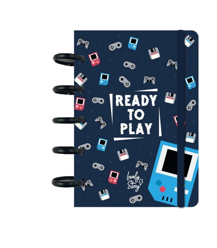 SMART BOOK A6 CON SISTEMA DE DISCOS - 100 HOJAS CUADRICULA 100GR - DARK BLUE - READY TO PLAY