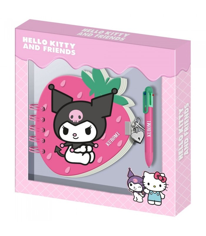 Hello Kitty Kuromi Strawberry-Pack de Diario Fresa + Bolígrafo de 6 Colores, Rosa