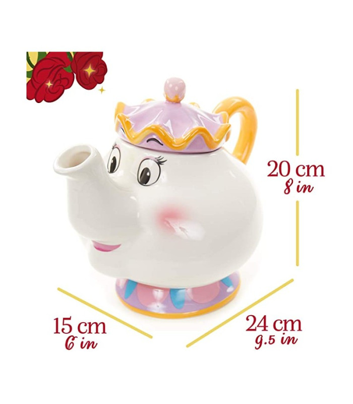 Ahorre para algo especial con esta mágica hucha de la Sra. Potts: hermosos regalos para celebrar un cuento tan antiguo como el tiempo. Detalles: - Hucha de resina pintada a mano - Fundido a partir de un molde de arcilla hecho a mano - Acabado brillante con colores blanco y morado - Mango galvanizado en oro metálico y detalles de la base - Ranura en la parte superior para monedas y billetes doblados - Tapón de goma fácil de quitar en la base - Completo con caja de regalo de la marca.