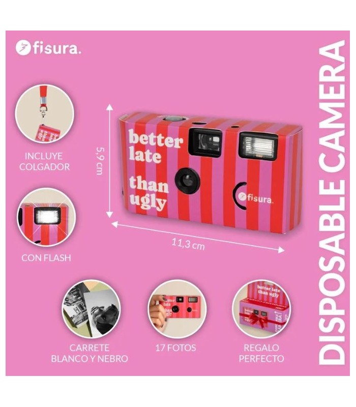 Con sus 17 exposiciones en blanco y negro, cada disparo de esta cámara de carrete tendrá ese toque vintage que enamora. Y si la luz no acompaña, su flash integrado ?? te salvará, haciendo fotos espectaculares incluso de noche. Solo enfoca, dispara? ¡y deja que la cámara analógica haga el resto!
