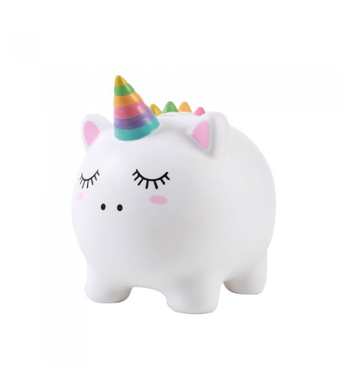 Una práctica y decorativa hucha unicornio, fabricada en plástico, muy ligera y resistente a los golpes.