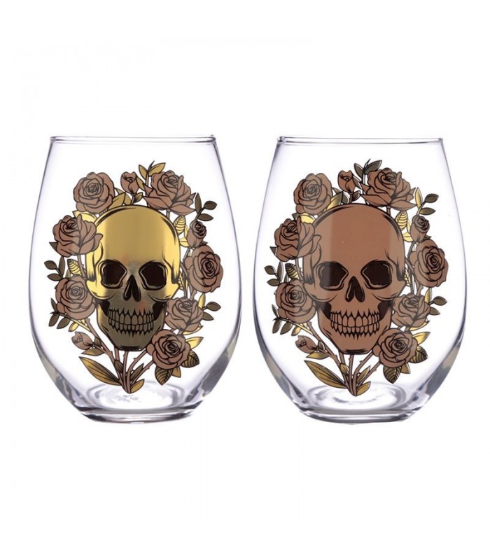 Juego de Dos Vasos de Cristal Calavera y Rosas