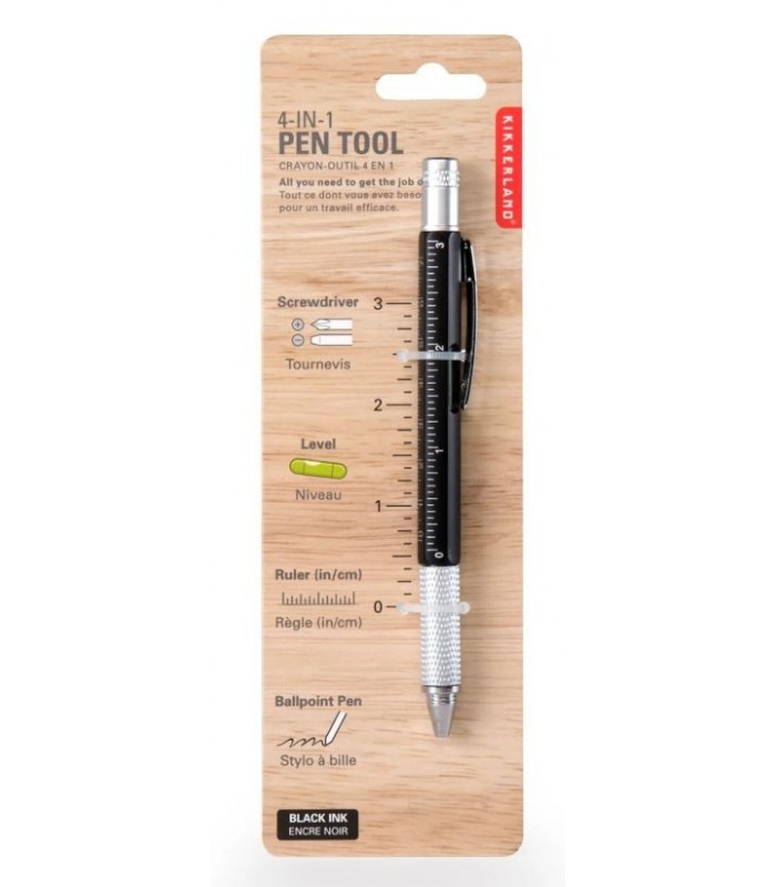 Esta herramienta de lápiz 4 en 1 es todo lo que necesita para hacer el trabajo. Vaya directamente desde los planos hasta completar un proyecto, todo con un bolígrafo. Philips cabeza / destornillador plano, nivel, regla (cm y pulg.) Y bolígrafo recargable de tinta negra. Fabricado en metal y plástico ABS