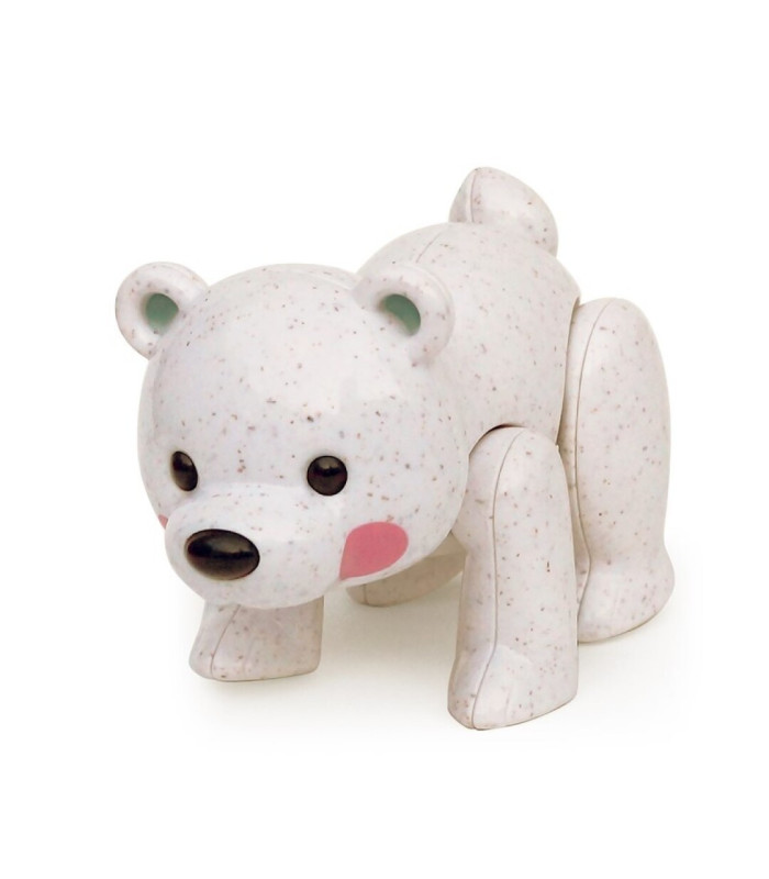 Mueve la cola, las patas, la cabeza hacia adelante y hacia atrás y hace un agradable sonido de clic.