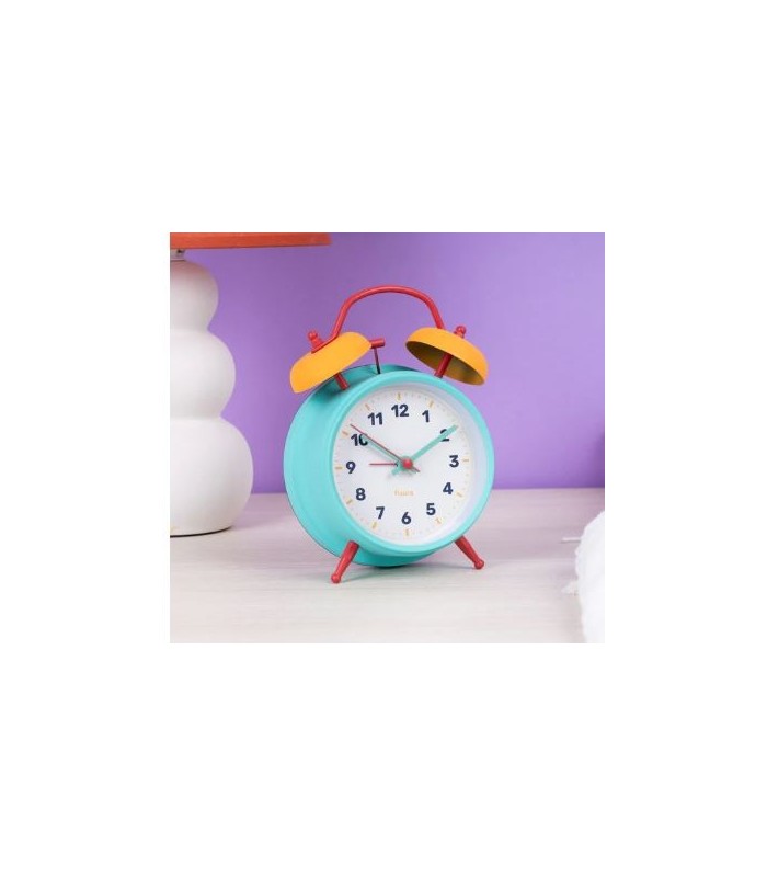 Comienza el día con una sonrisa con este reloj analógico multicolor que te da los buenos días. Además, con su diseño retro y sus colores verde menta, naranjay rojo es ideal para darle un toque de color y alegría a tu mesita de noche.