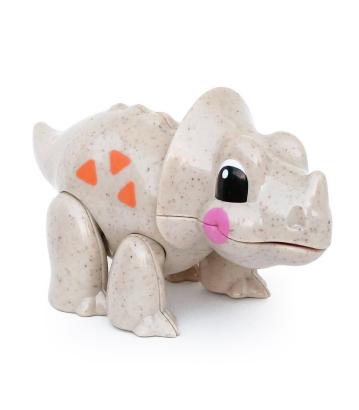 Mueve la cola, las patas, la cabeza hacia adelante y hacia atrás y hace un agradable sonido de clic.
