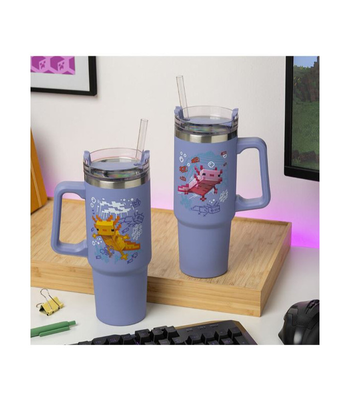 Minecraft Purple 900ml Vaso aislante y pajita Mine