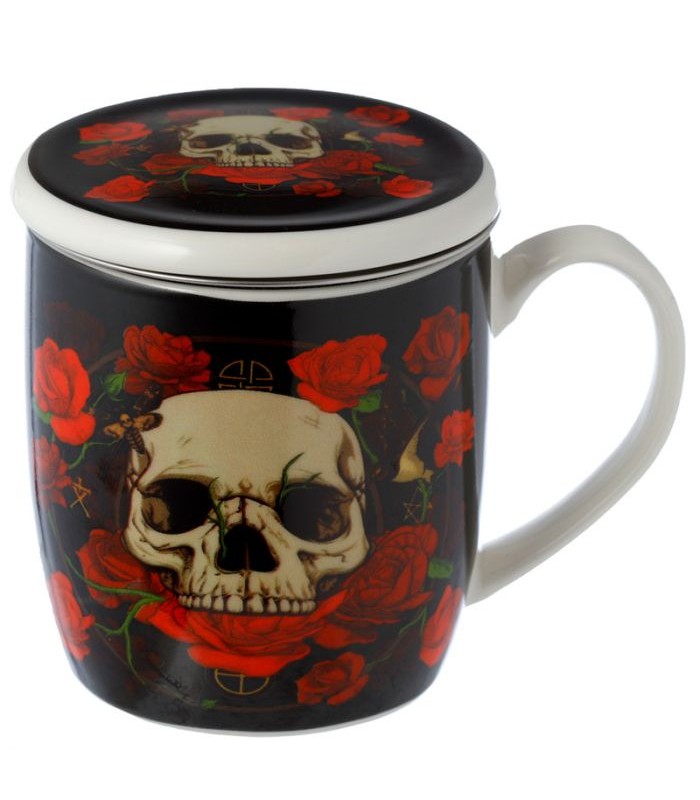 Taza para Té de Porcelana con Tapa - Calaveras y R