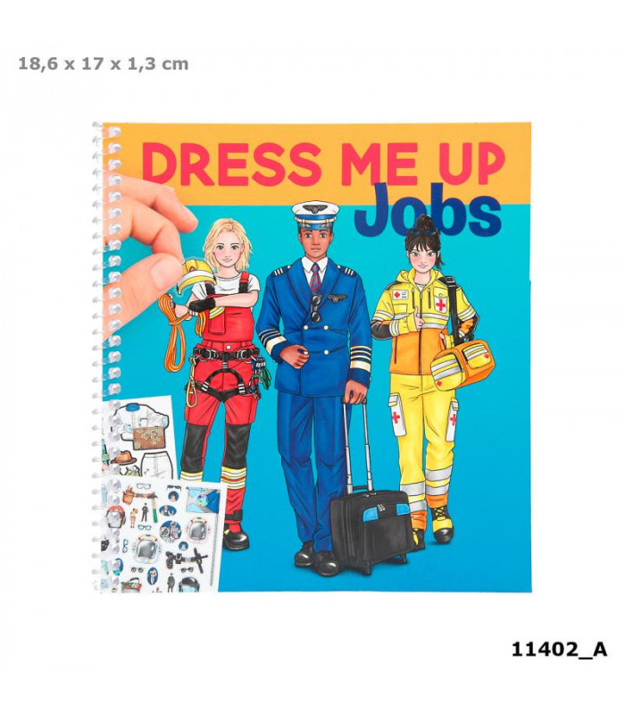Bombero, veterinaria, pastelero, policía, astronauta, deshollinador y mucho más. Las 11 hojas de pegatinas del álbum TOPModel Dress me up Jobs te permitirán pasarlo en grande jugando a las profesiones a lo largo de 24 páginas. ¡Que te diviertas trabajando!