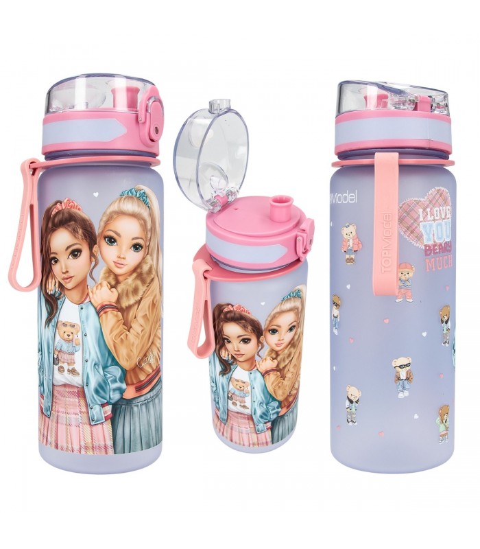 La botella azul semitransparente de TOPmodel está adornada con dos guapas modelos como motivo principal, además de ositos y un texto cool. Con muchos detalles color rosa, así como tapa transparente flip-top que permite su uso con una sola mano y resulta muy higiénica. La botella no debe usarse en lavavajillas ni microondas para no estropear su cuidada decoración. Material: plástico tritán neutral a los olores, libre de bisfenol A (BPA) y plastificantes (ftalatos). Capacidad: 700 ml.