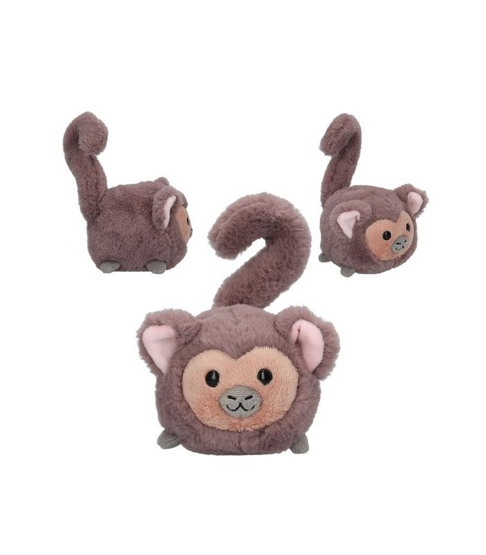 Redondito, suavecito, guay. El cuerpo de este monito de peluche de TOPModel es de formas redondas, tiene la piel suave, ojos negros redondos y la colita enroscada.