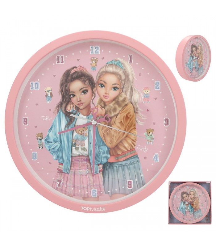 It's Teddy Time! La esfera de este reloj de pared redondo de plástico rosa está decorada con ositos monísimos y dos maravillosas modelos. El reloj es totalmente silencioso (agujas de recorrido deslizante). Se vende con caja regalo de múltiples colores. Diámetro; 25 cm; pila recambiable (1 x AA 1,5V) incluida. Con instrucciones detalladas.